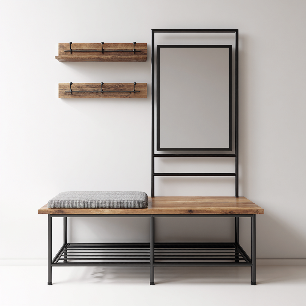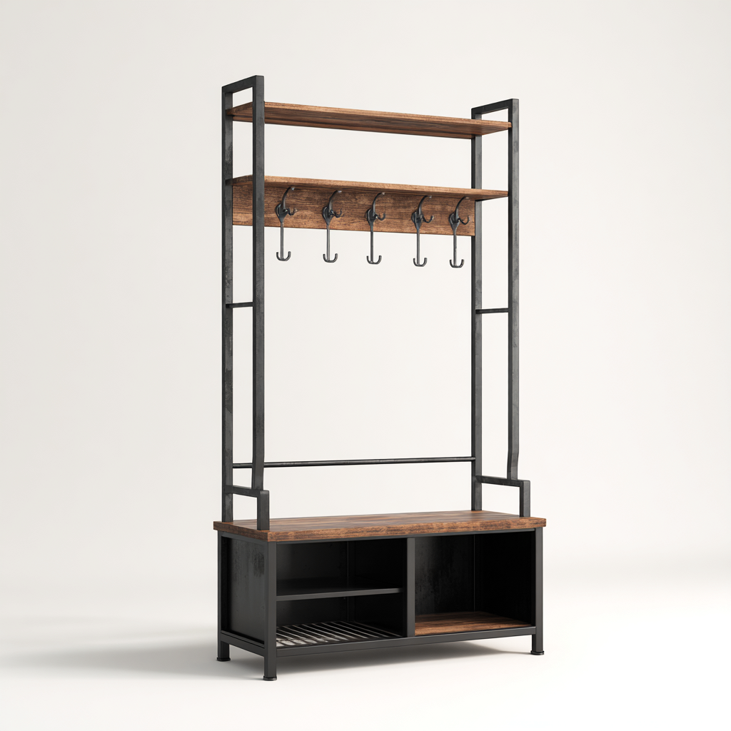 Garderobenständer Holz-Metall 100x40x180 cm - Braun-Schwarz - Modernes Design