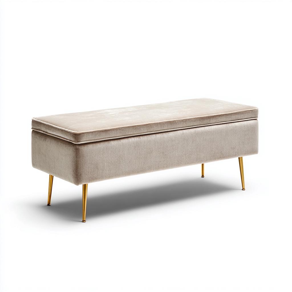 Sitzbank für Flur Stoff-Metall 110x40x45 cm - Beige-Gold - Modernes Design