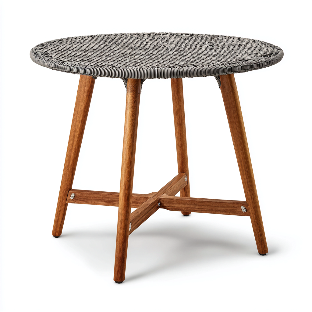 Gartentisch - Geflecht und Massivholz - 50x50x55 cm - weiß-braun - skandinavisches Design