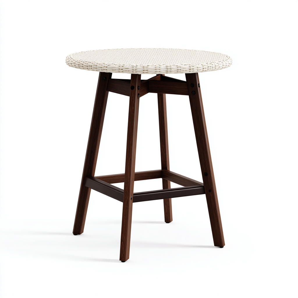 Gartentisch Holz-Polyrattan - 55x55x70 cm - Weiß-Braun - Modern - für Garten