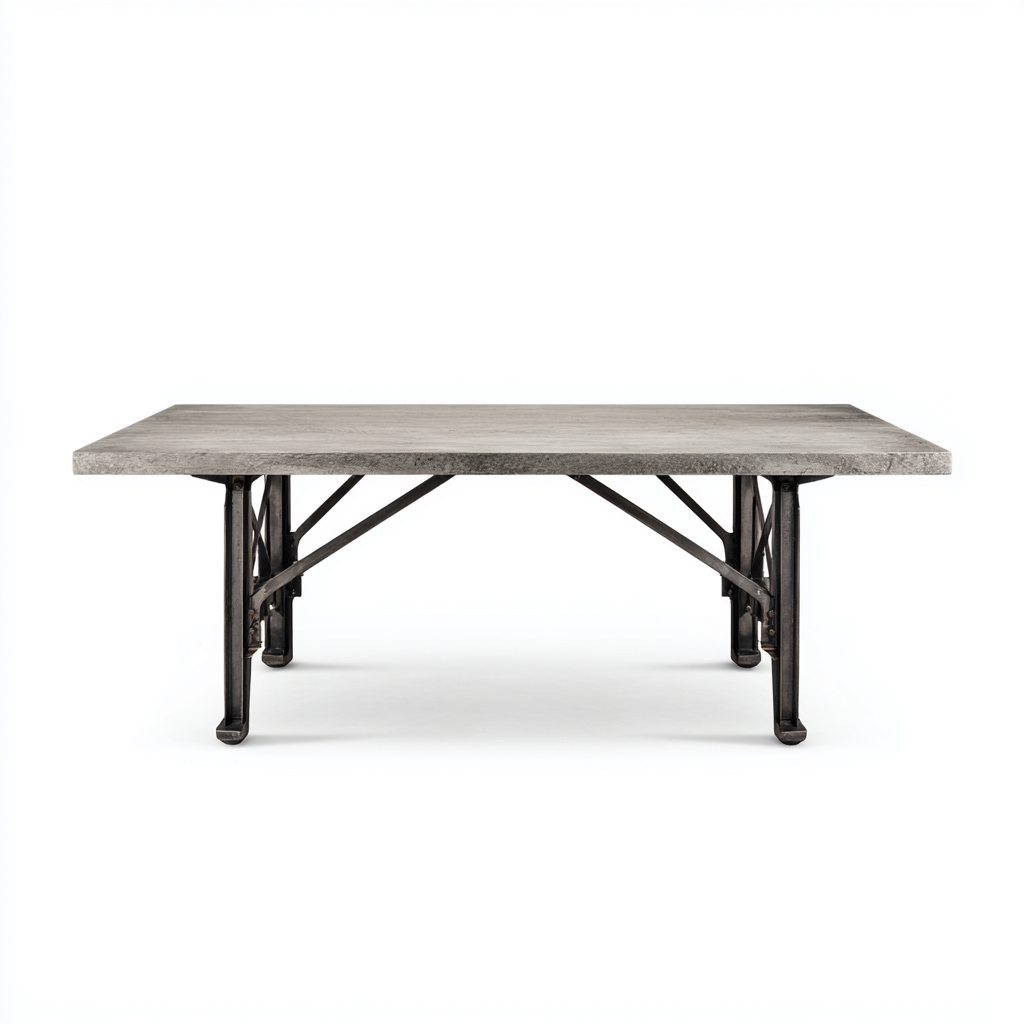 Gartentisch Stein-Metall 140x70x75 cm - Grau-Schwarz - Modernes Design