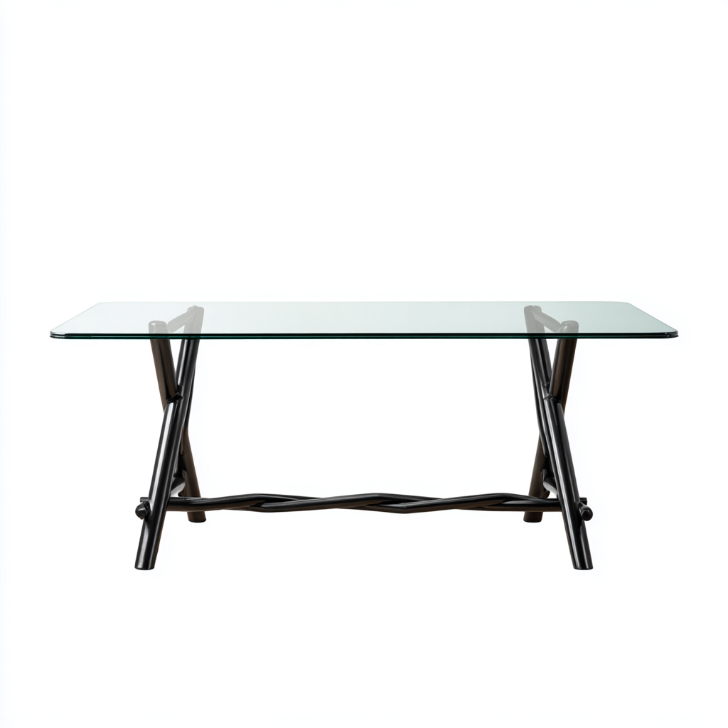 Gartentisch Glas-Metall 120x60x75 cm - Transparent-Schwarz - Modernes Design