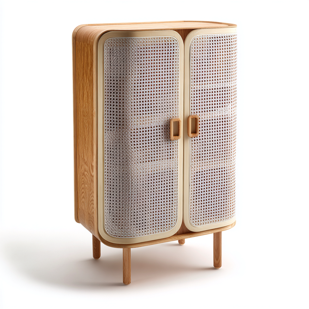 Kleiderschrank Holz Rattan 80x45x160 cm Natur Modernes Design