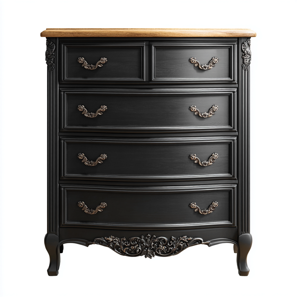 Kommode mit 4 Schubladen - Schwarz mit Eichenholz - 80x40x120 cm - Klassisches Design