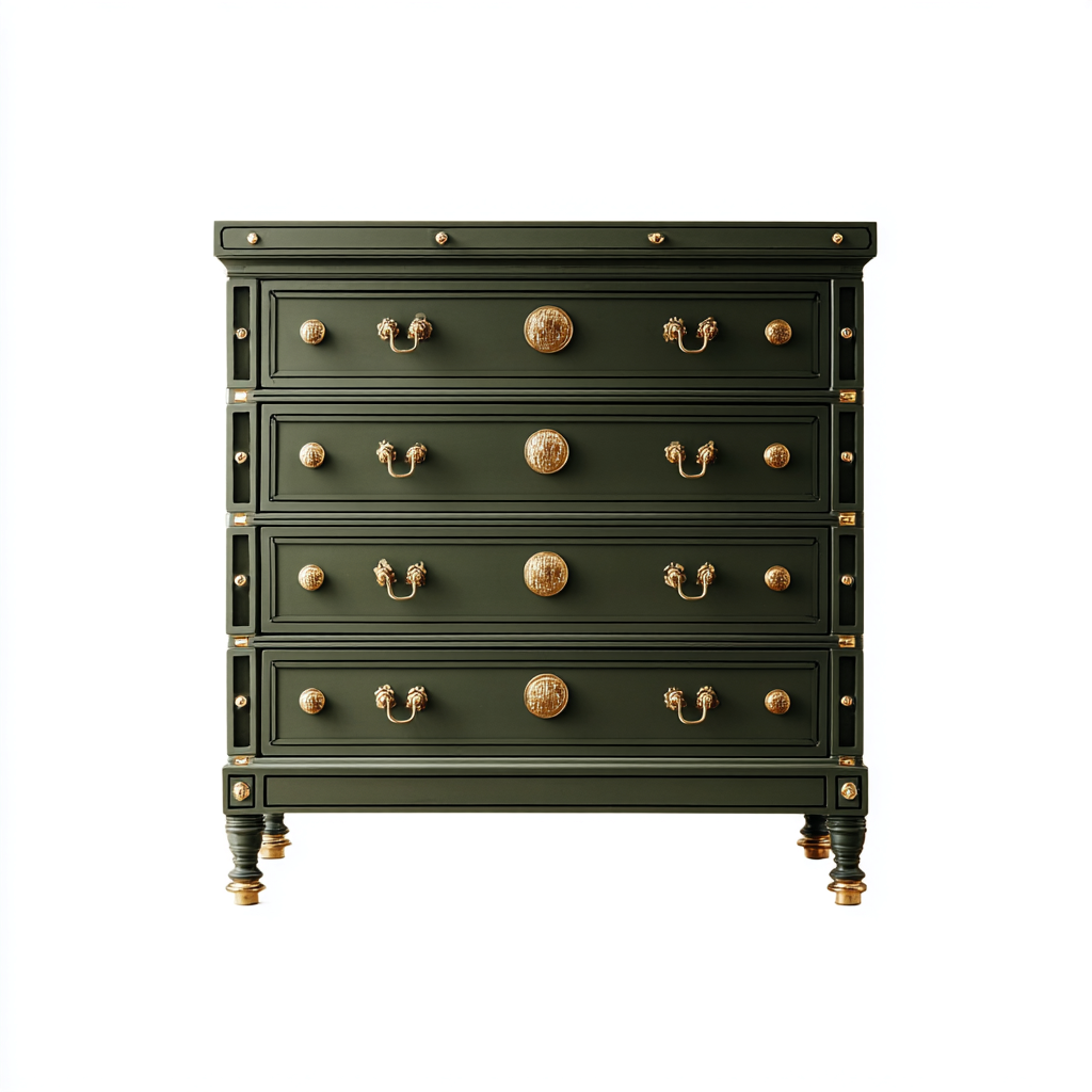 Kommode mit Schubladen - Holz - 95x45x120 cm - Dunkelgrün-Gold - Klassisches Design für Wohnzimmer-Schlafzimmer