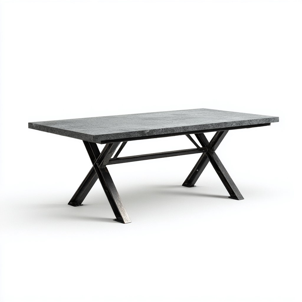 Dieser Gartentisch verbindet eine robuste Steinplatte in Grau mit einem stabilen Metallgestell. Das moderne Design eignet sich ideal für Terrassen, Gärten und großzügige Außenbereiche.