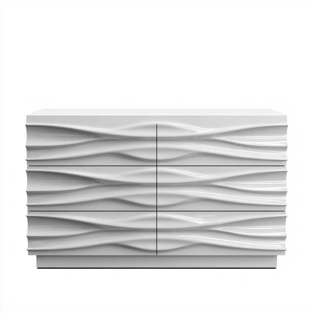 Diese elegante Kommode mit Schubladen bietet ein modernes und funktionales Design. Mit ihrer klaren Struktur und den schlichten, eleganten Linien passt sie perfekt in jedes moderne Zuhause. Sie ist eine ideale Lösung zur Aufbewahrung Ihrer persönlichen Gegenstände.
