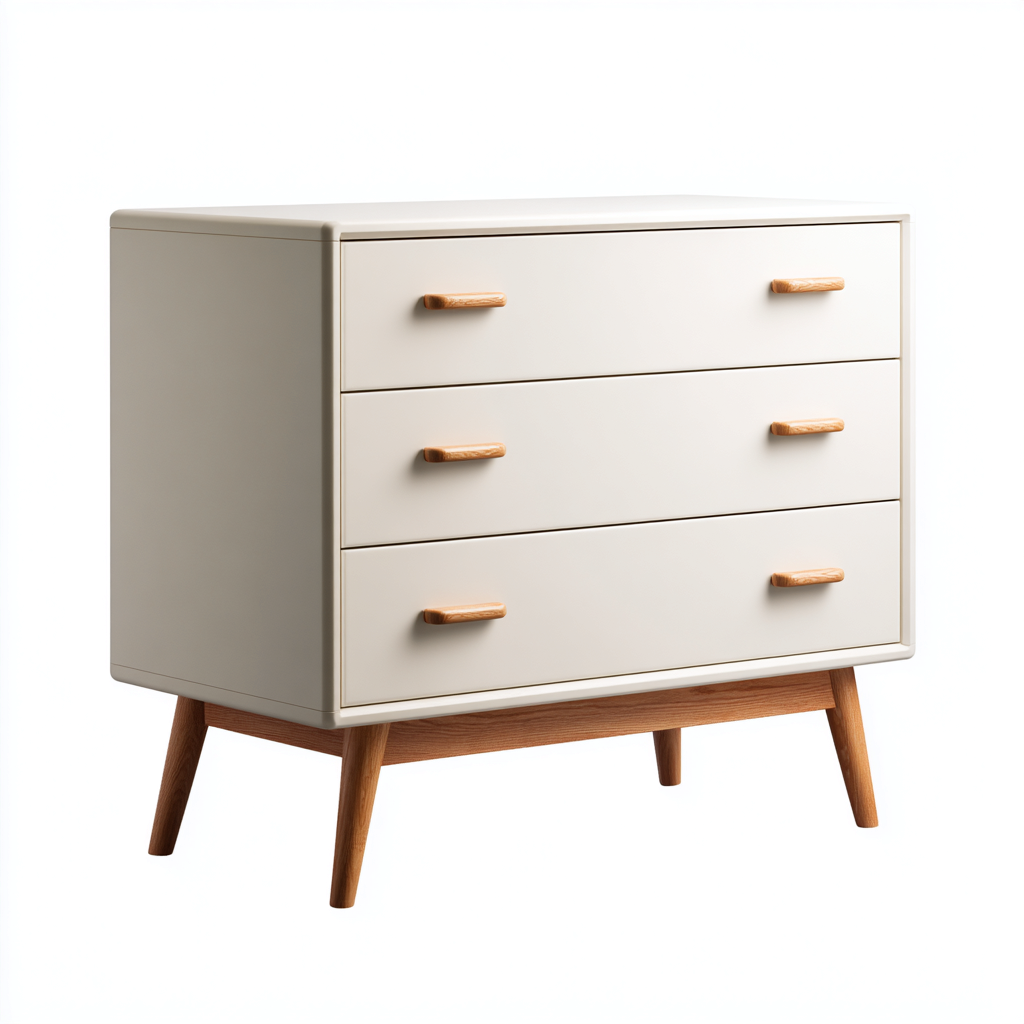 Das Möbelstück ist mit drei leichtgängigen Schubladen ausgestattet, die vielseitigen Stauraum für Kleidung, Accessoires oder Alltagsgegenstände bieten. Die erhöhte Beinstruktur erleichtert die Reinigung unter dem Möbel.