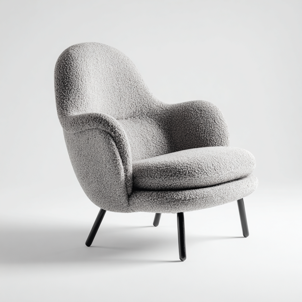 Dieser Sessel überzeugt mit einer weichen Stoffpolsterung und einer organischen Formgebung. Die geschwungenen Linien und die einladende Silhouette verleihen dem Möbelstück eine moderne und zugleich komfortable Ausstrahlung.