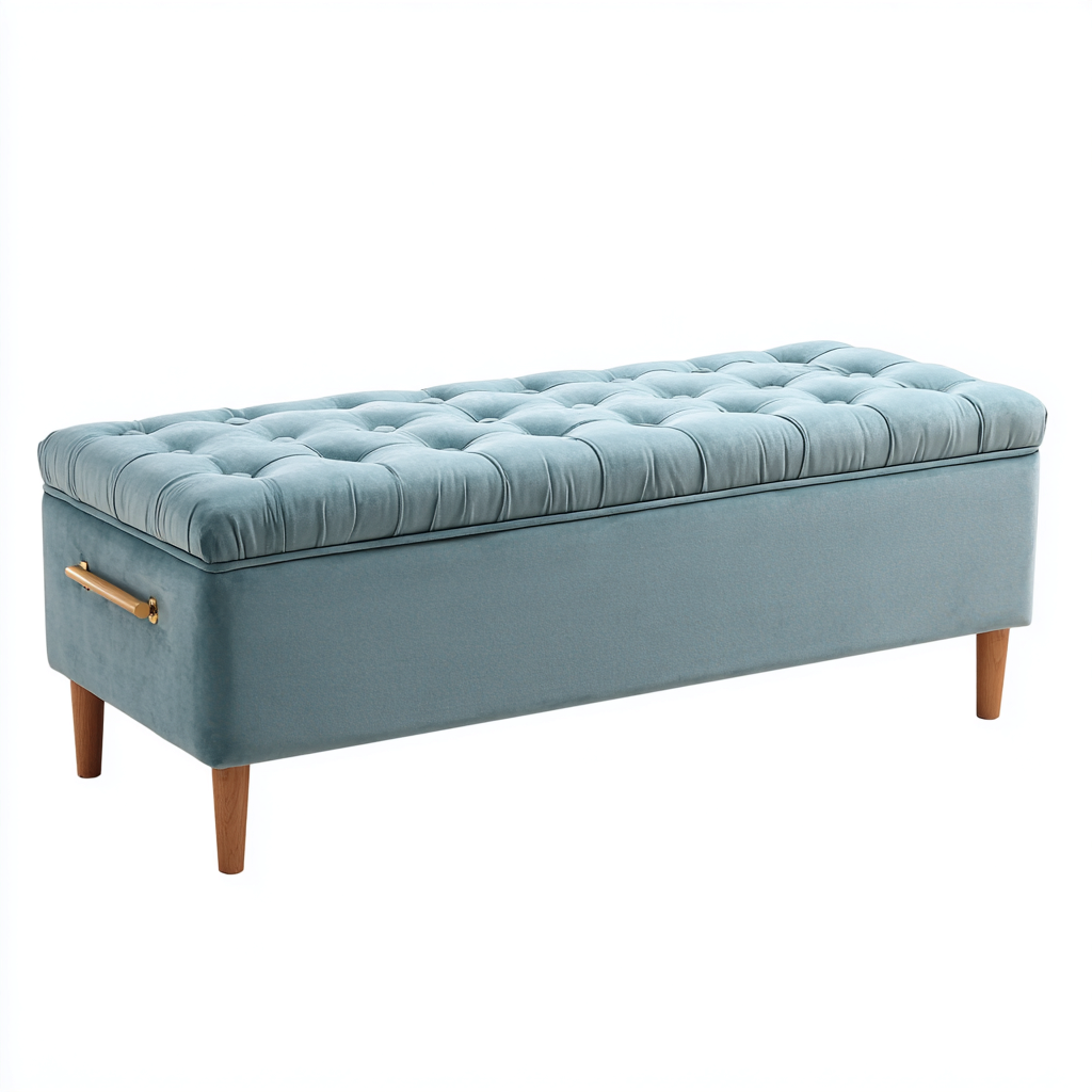 Die Bank bietet eine gepolsterte Sitzfläche für bequemes Sitzen sowie einen integrierten Stauraum im Inneren zur geordneten Aufbewahrung von Alltagsgegenständen.